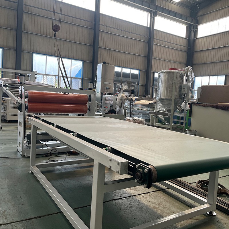 硬質PVC照明板押出機装置 PVC照明板押出機装置:この装置は主に二軸押出機、プレート金型、三本ローラーカレンダー、冷却ブラケット、ゴムローラー牽引機、切断機、および搬送装置で構成されています。