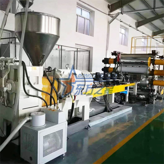 HDPE シート ジオグリッド装置はジオセルの製造に使用されます。この製品の最初のステップはシートを製造し、次にシートをオンラインで切断し、その後プラスチックシートを接続します。