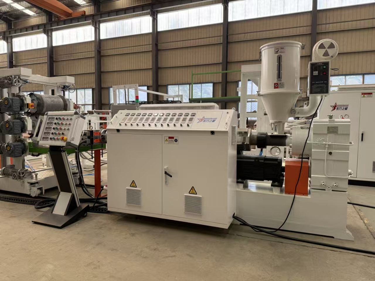 この機械は、押出プロセスの正確な制御を可能にする最先端の PLC (プログラマブル ロジック コントローラー) システムを備えています。オペレーターは、温度、速度、圧力などのパラメータを簡単に調整して、希望のシート特性を実現できます。このレベルの管理により、製品の一貫した品質が保証され、材料の無駄が削減されます。