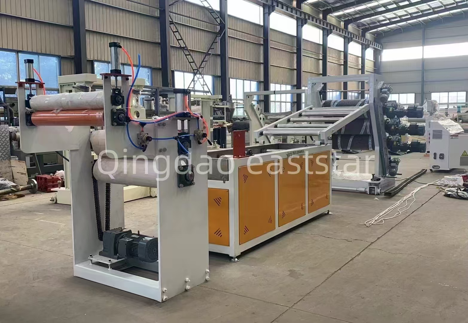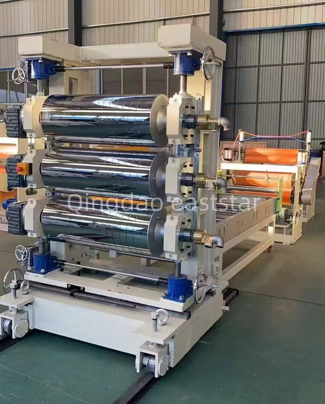 のPVCフレキシブルドアカーテン生産ラインの3本ロールカレンダーは縦型構造を採用し、ローラー硬度RC60~65の∮320×800mm鏡面ローラーを搭載しています。生産ラインには、5 メートルの冷却サポート、ゴムローラー牽引機、デュアルステーション巻取りシステムも含まれており、原材料から最終製品までの完全なプロセスフローを実現しています。現場訪問中、クライアントは生産効率と製品品質を高く評価しました。PVCフレキシブルカーテン装置、11月の正式署名に向けて有利な条件を作り出した。