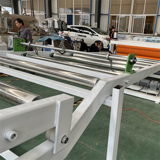 PVC帯電防止ボード設備:この設備は主に120単軸押出機、三本ローラーカレンダー、冷却ブラケット、ゴムローラー牽引機、シャーリング機、コンベアベルト装置で構成されています。 PVCタートルバックパネル装備品の標準幅は1000mmです。厚さは6mmです。 PVC帯電防止押出機ボード設備は、タートルパターン、オレンジピールパターン、チェックパターンなどのさまざまなテクスチャを生成できます。 PVCタートルボード装置は、顧客の要件に応じて加工およびカスタマイズできます。