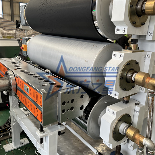 PVC帯電防止ボード設備:この設備は主に120単軸押出機、三本ローラーカレンダー、冷却ブラケット、ゴムローラー牽引機、剪断機、