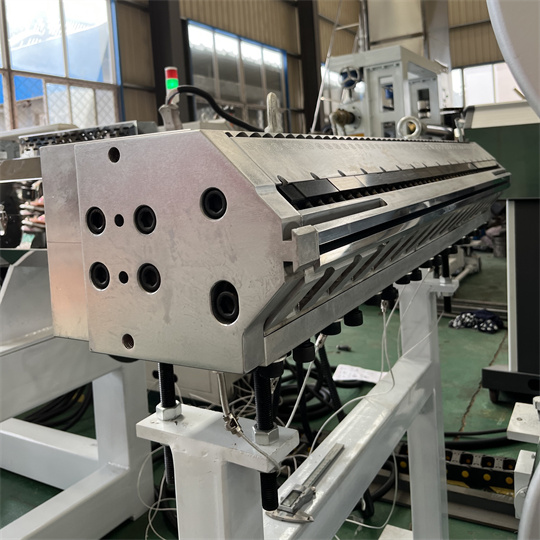 シート押出機のダイ 構造:ハンガー型ランナー、T型金型 材質:高品質金型鋼 金型の内部流路はクロムメッキされており、クロムメッキ層の最小厚さは0.03〜0.05mmです。 鏡面研磨(キャビティRa0.1um、ダイリップRa0.05um)