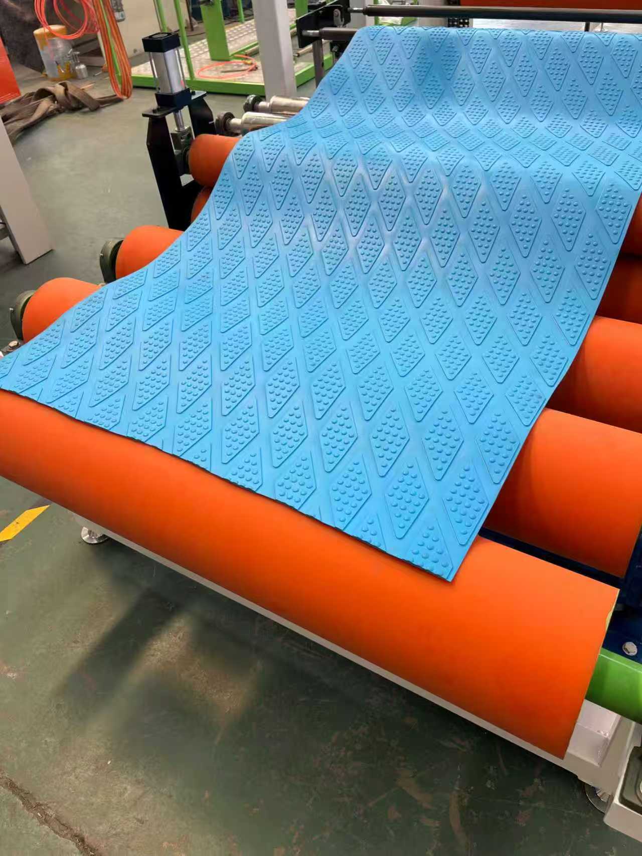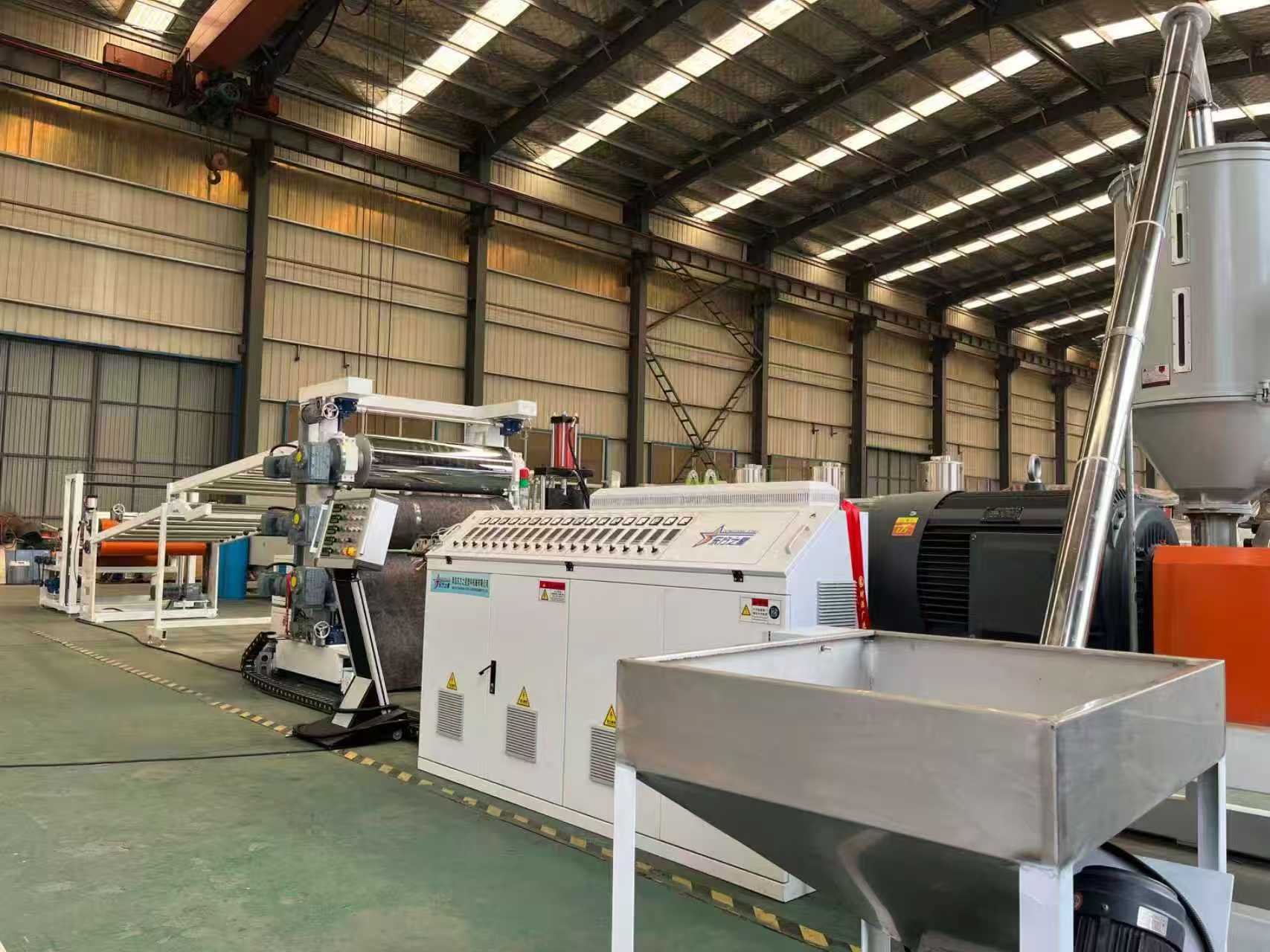 TPE-1000mm滑り止めマット機器カーフロアマット:この機器は主に、単軸押出機、3ローラーカレンダー、6メートルの冷却ブラケット、ゴムローラー牽引機、せん断機、およびコンベアベルト装置で構成されています。